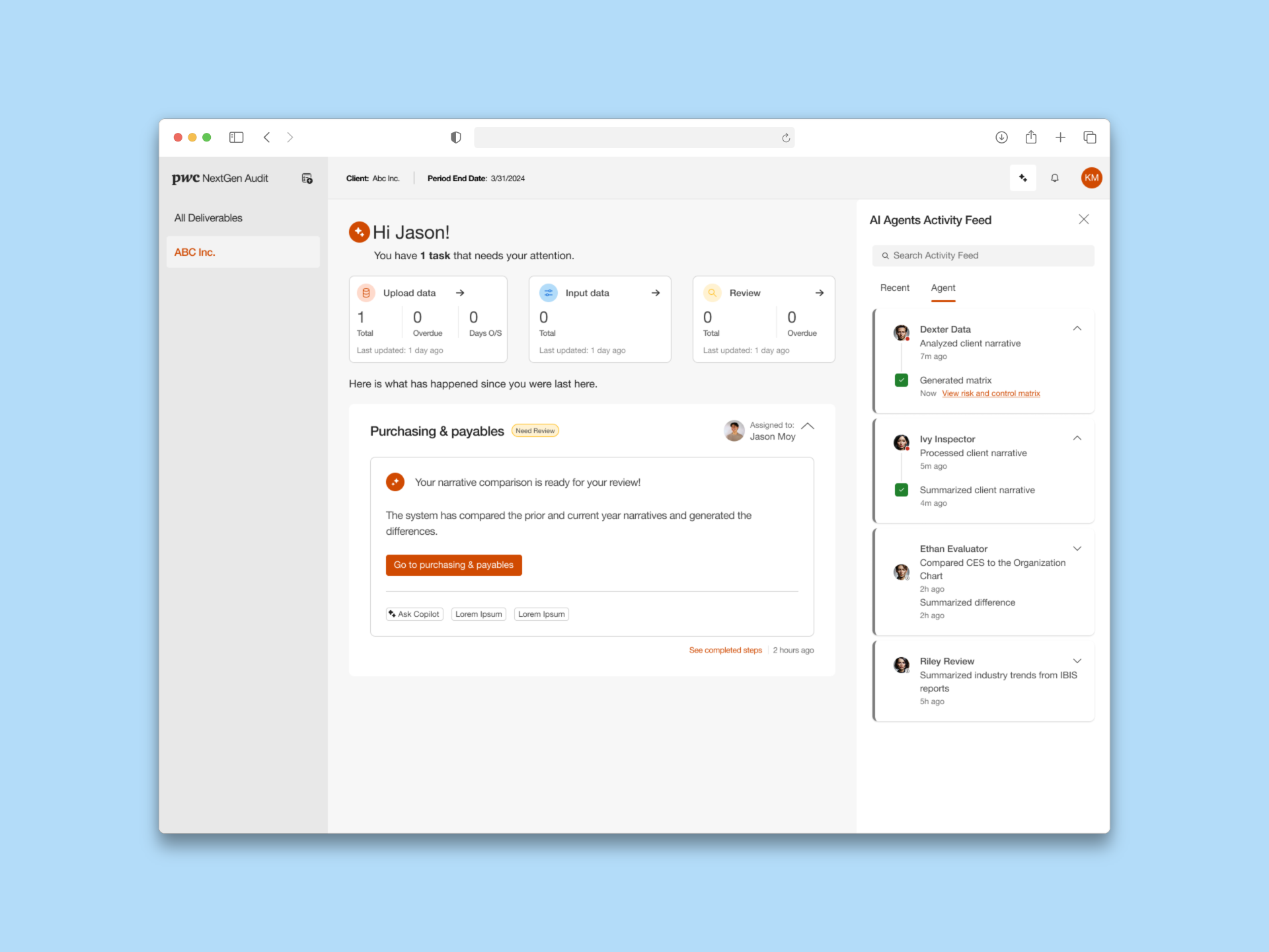 Utilizing client data, our MVP product successfully automated key parts of the audit using AI, agent frameworks, and data integrations confirming our hypothesis. We gained global stakeholder and leadership support, providing the team with the go ahead to grow the product at scale. Disrupt established the foundation for the current award winning platform.